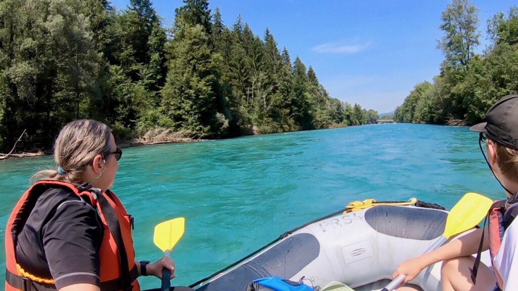 Raft thrilling rapids on Aare River