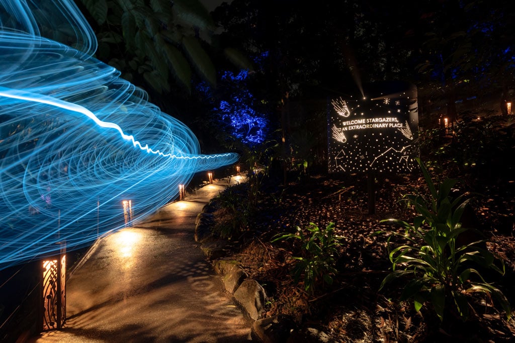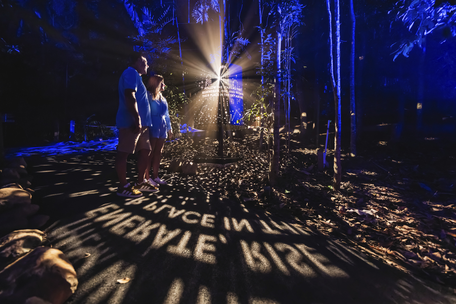 Walk illuminated forest at Astra Lumina