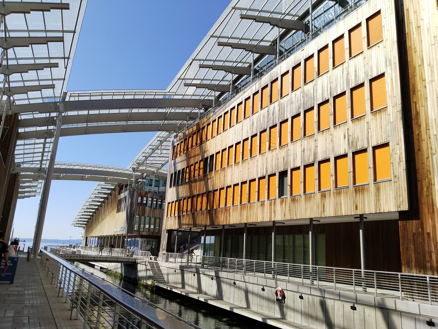 Tjuvholmen is bike-friendly, with public bicycle parking spots and city bike rental stations available near the bus stop and Bryggegangen.