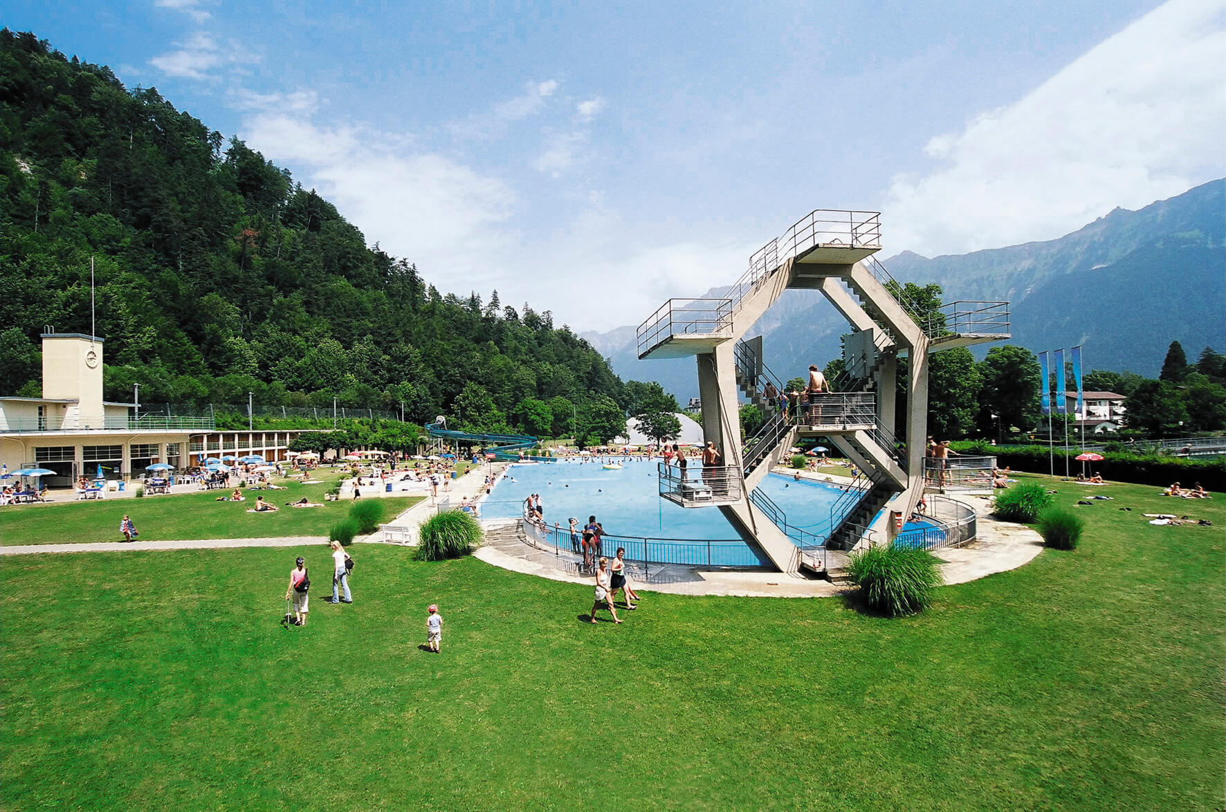 Taxis are readily available in Interlaken and provide a direct route to Bodeli-Badi.