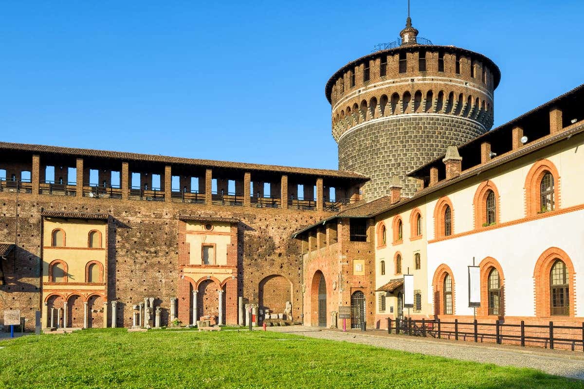 Walk ancient courtyards at Castello Sforzesco