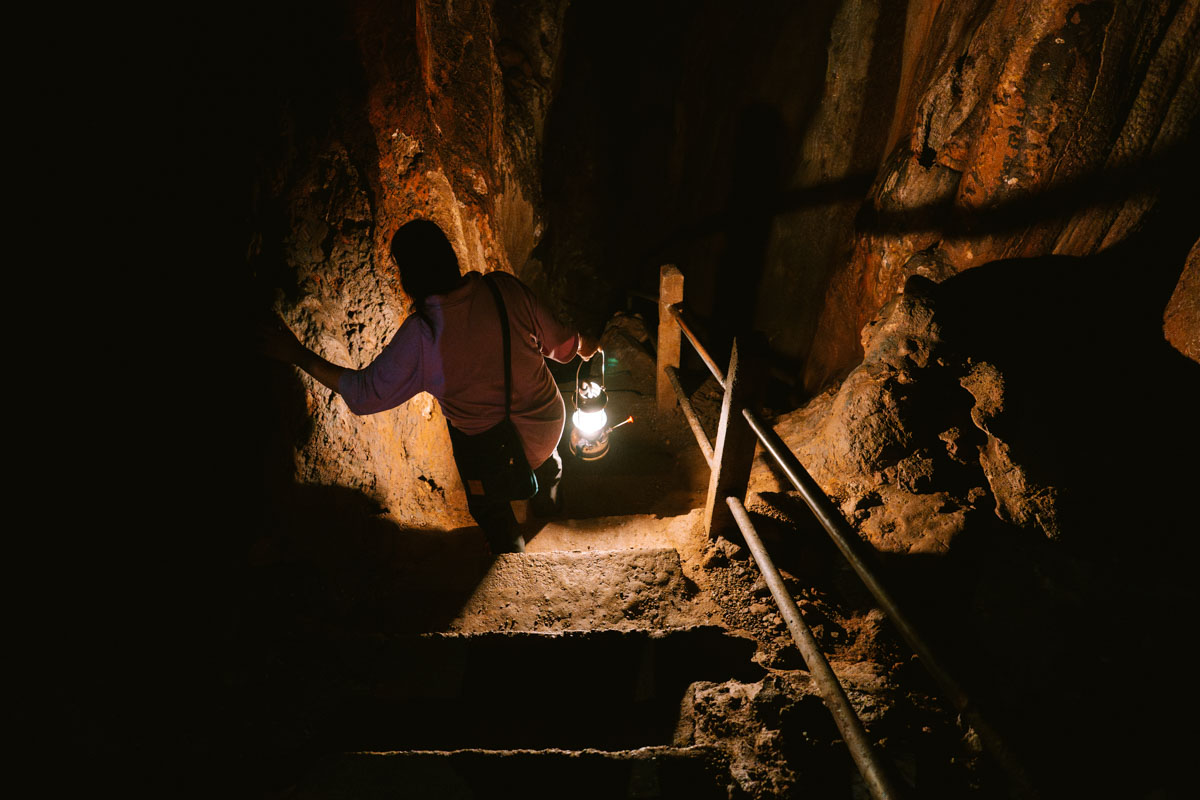Cave exploration involves stairs, uneven terrain, and walking.