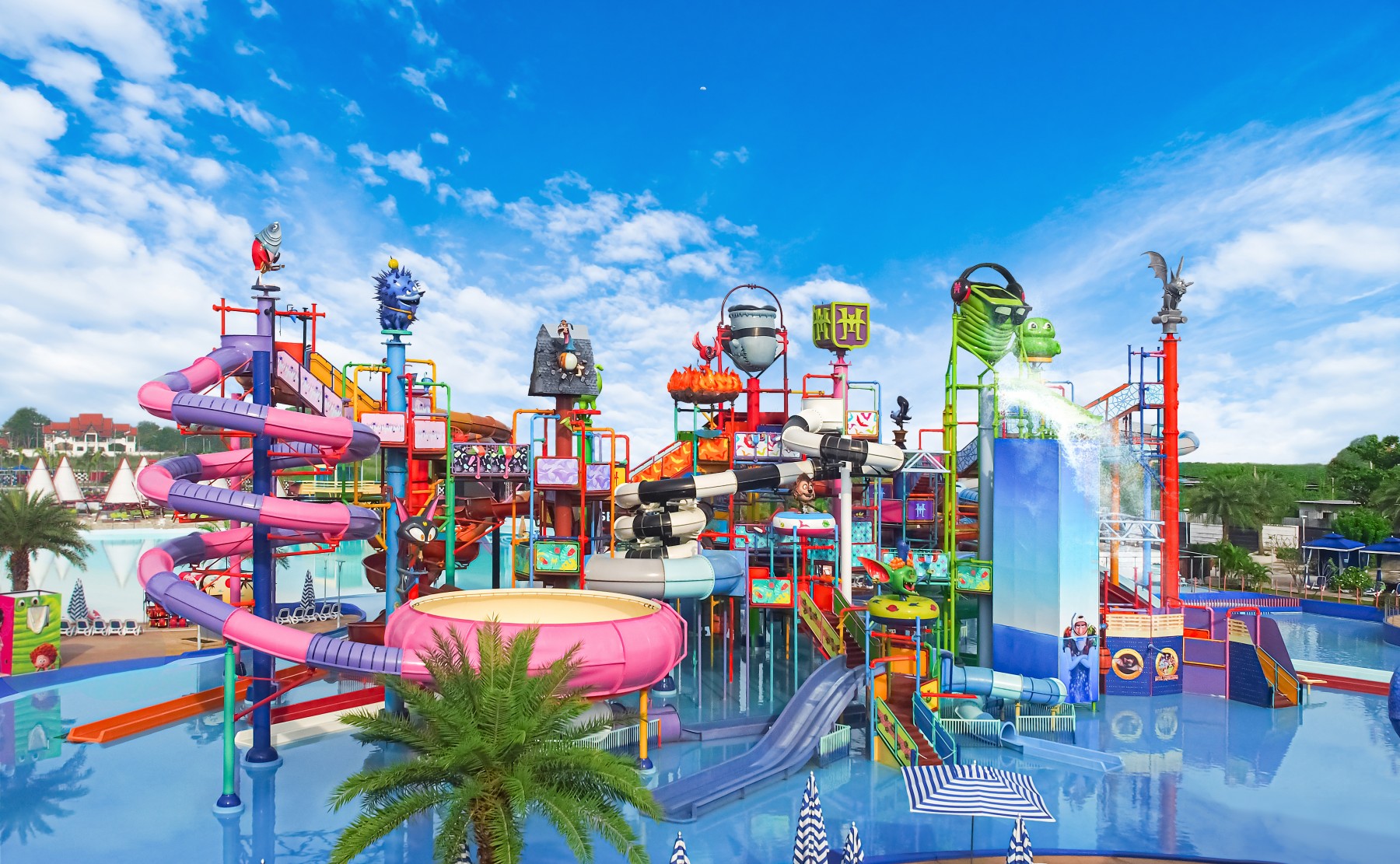 Couples enjoyed the variety of thrilling slides and the well-themed zones. Great for photos!