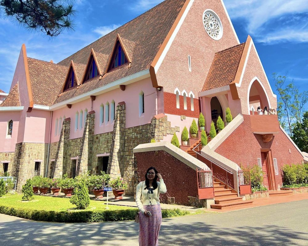 Couples found the pink architecture of the church perfect for photos and a serene visit.