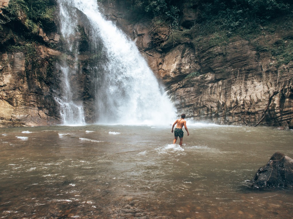The final 1.5 km to the waterfall is a trek through jungle terrain, including rocky riverbeds and streams.