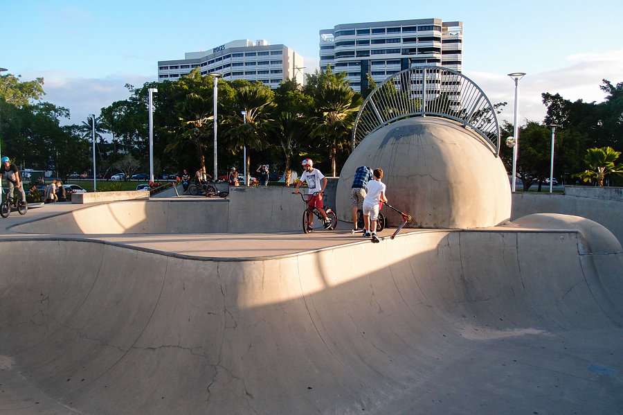 The Cairns Esplanade features dedicated paths for cyclists, making for a pleasant and scenic journey to the skate park.