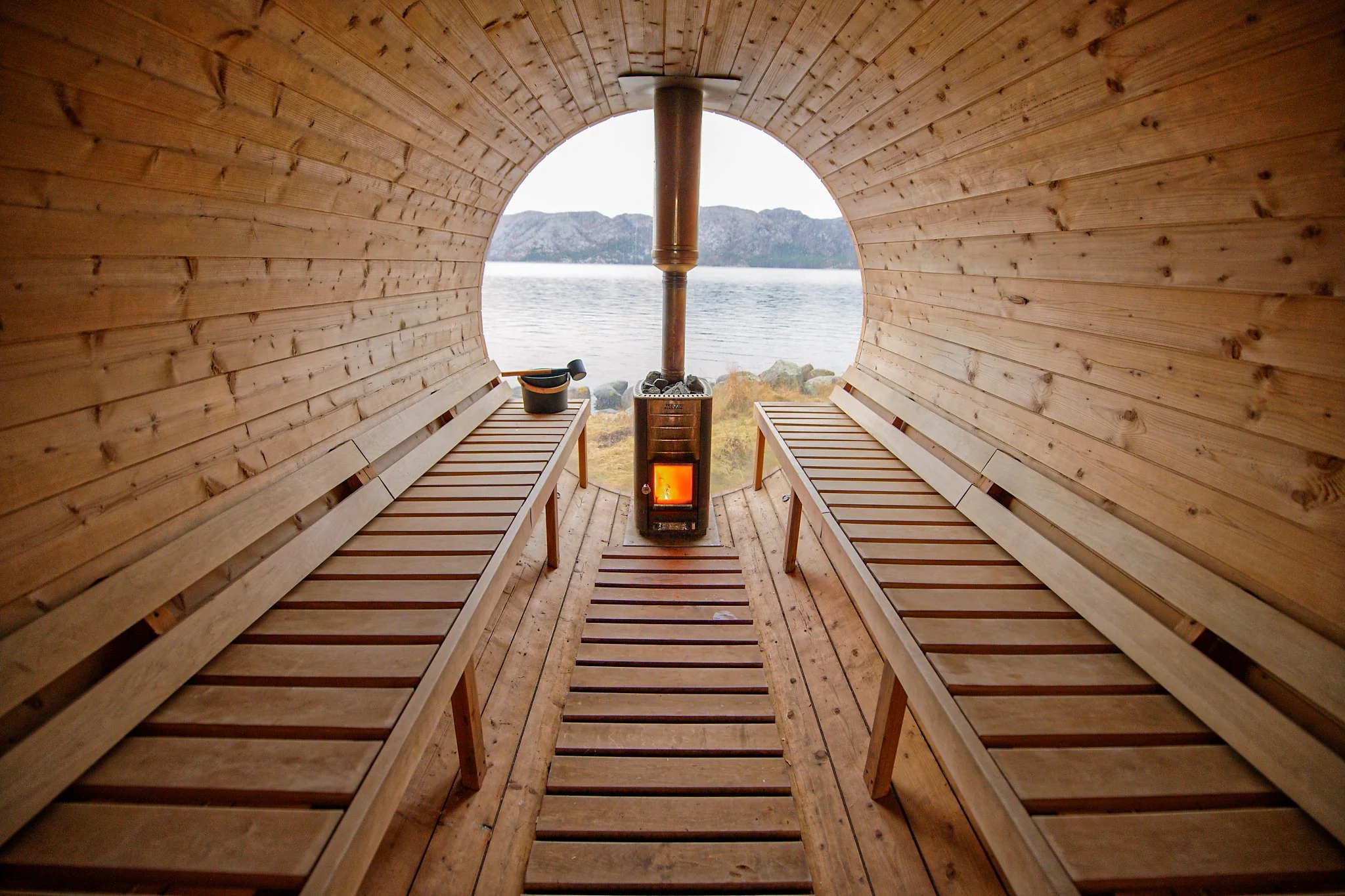 Experience floating sauna with harbor views