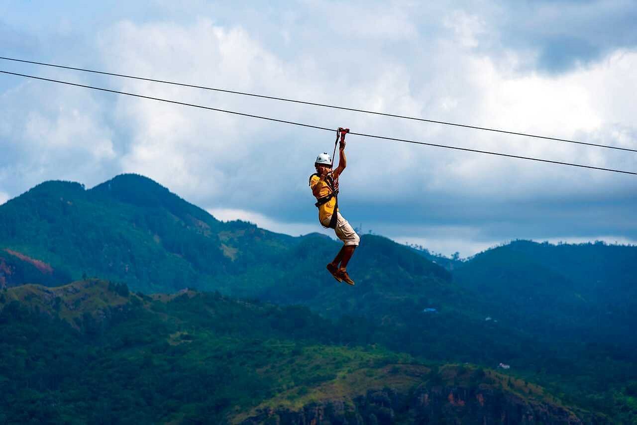 Experience zip-lining at Flying Ravana Adventure Park