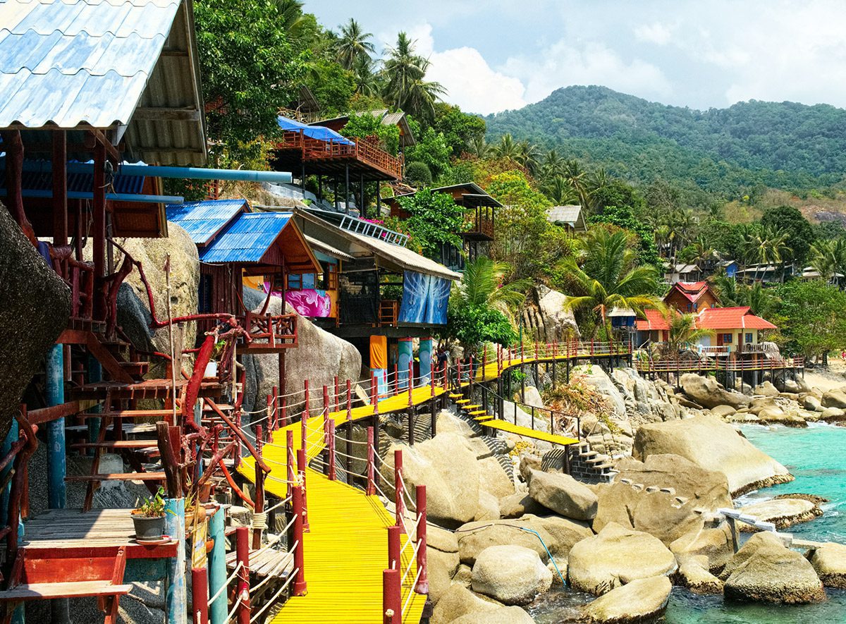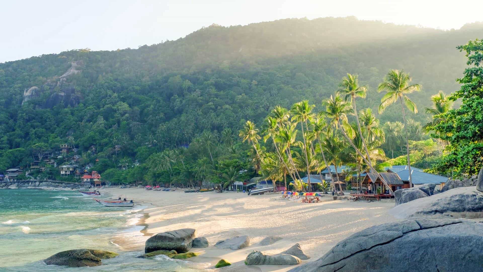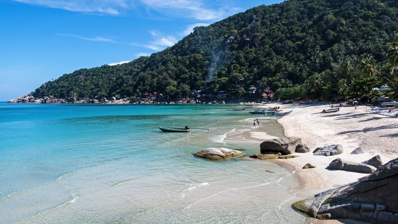 Excellent time for beach activities, clear water, and vibrant but relaxed atmosphere. Access is only by longtail boat from Haad Rin or by 4x4 through jungle; no direct road or public transport.