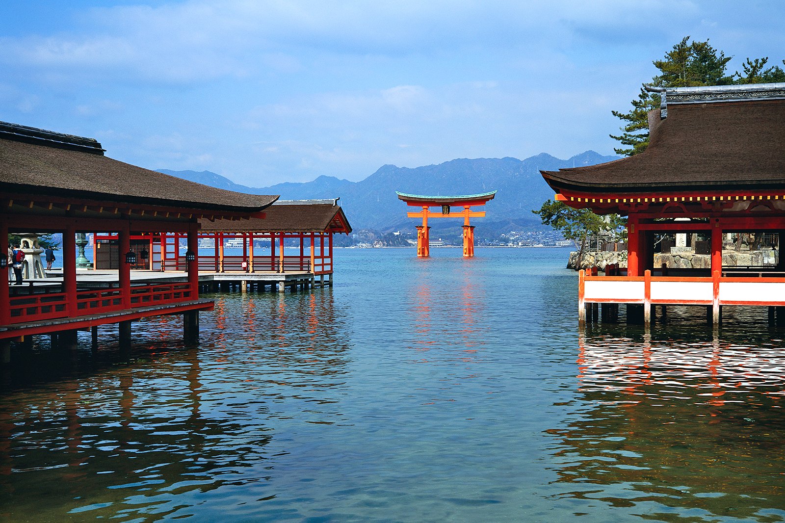 The shrine is a 10-minute walk from the Miyajima Ferry Terminal.