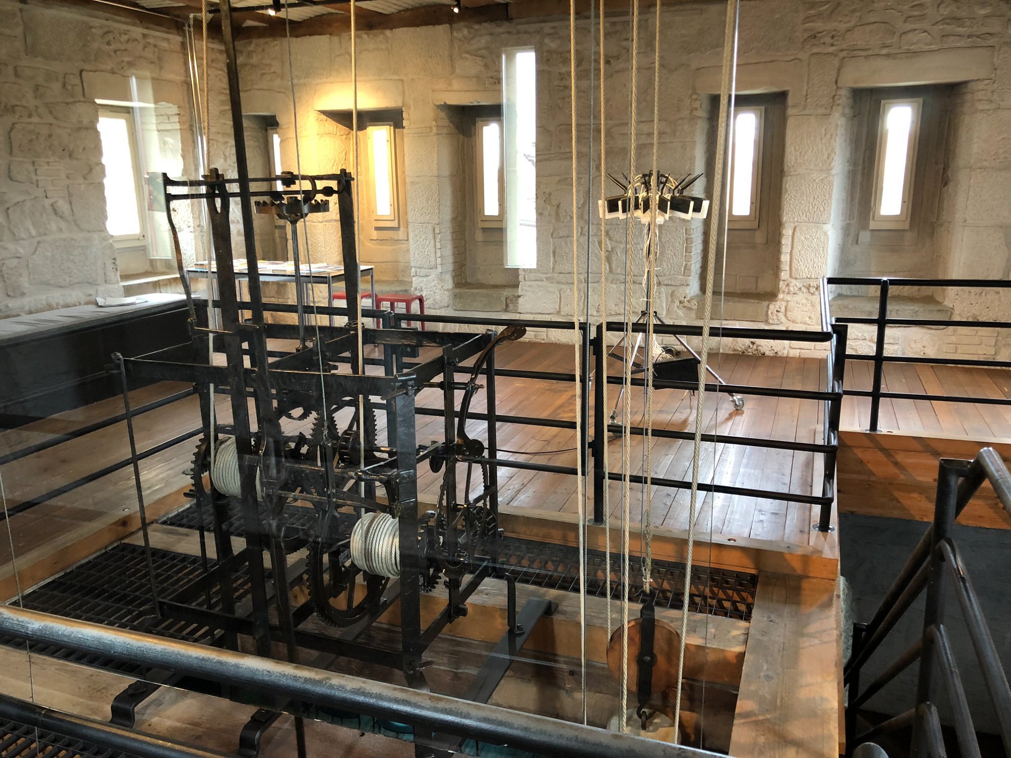 Historic tower has stairs and uneven surfaces; no lifts or ramps.