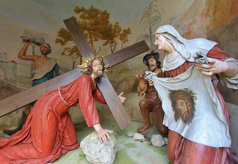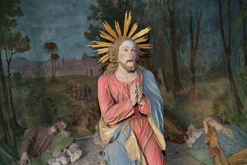 Walk uphill from the main road, following the Calvary path.