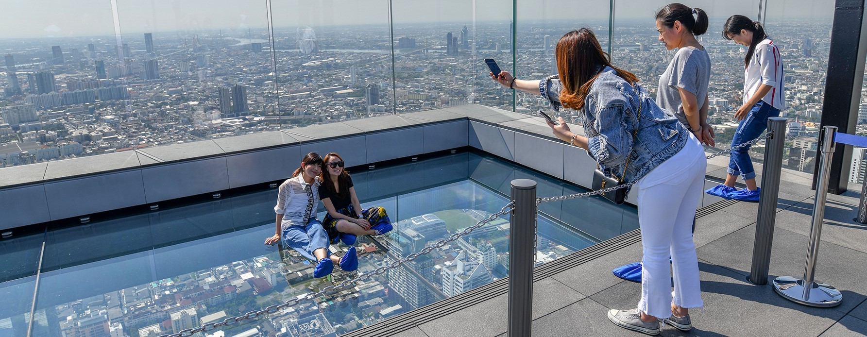 Walk on glass floor at Mahanakhon SkyWalk