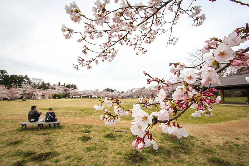 Couples loved the serene atmosphere and beautiful cherry blossoms at Mikamine Park.