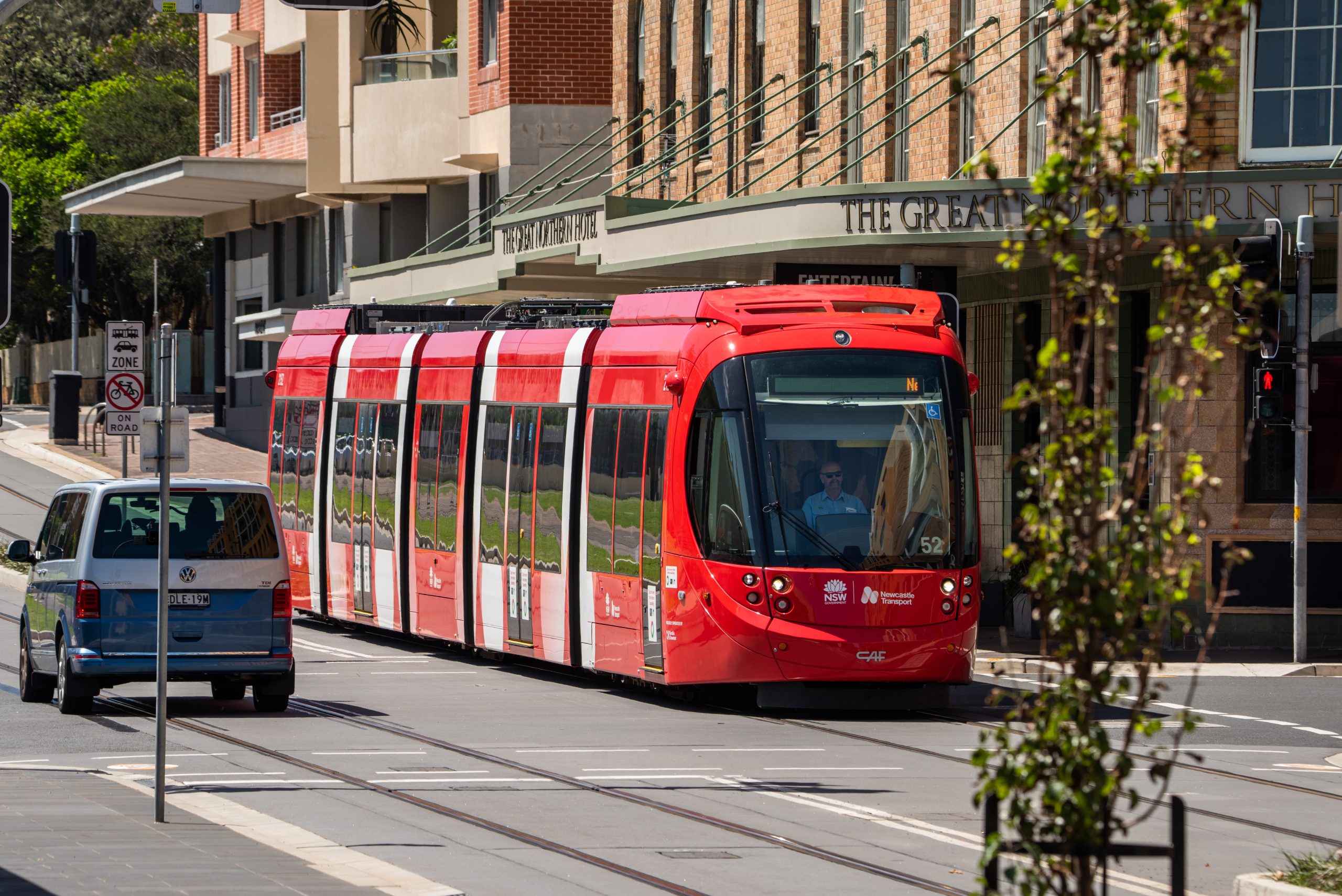 The HUN (Hunter Line) train service connects to the Newcastle area. From the Newcastle Interchange, connect to light rail or bus services.