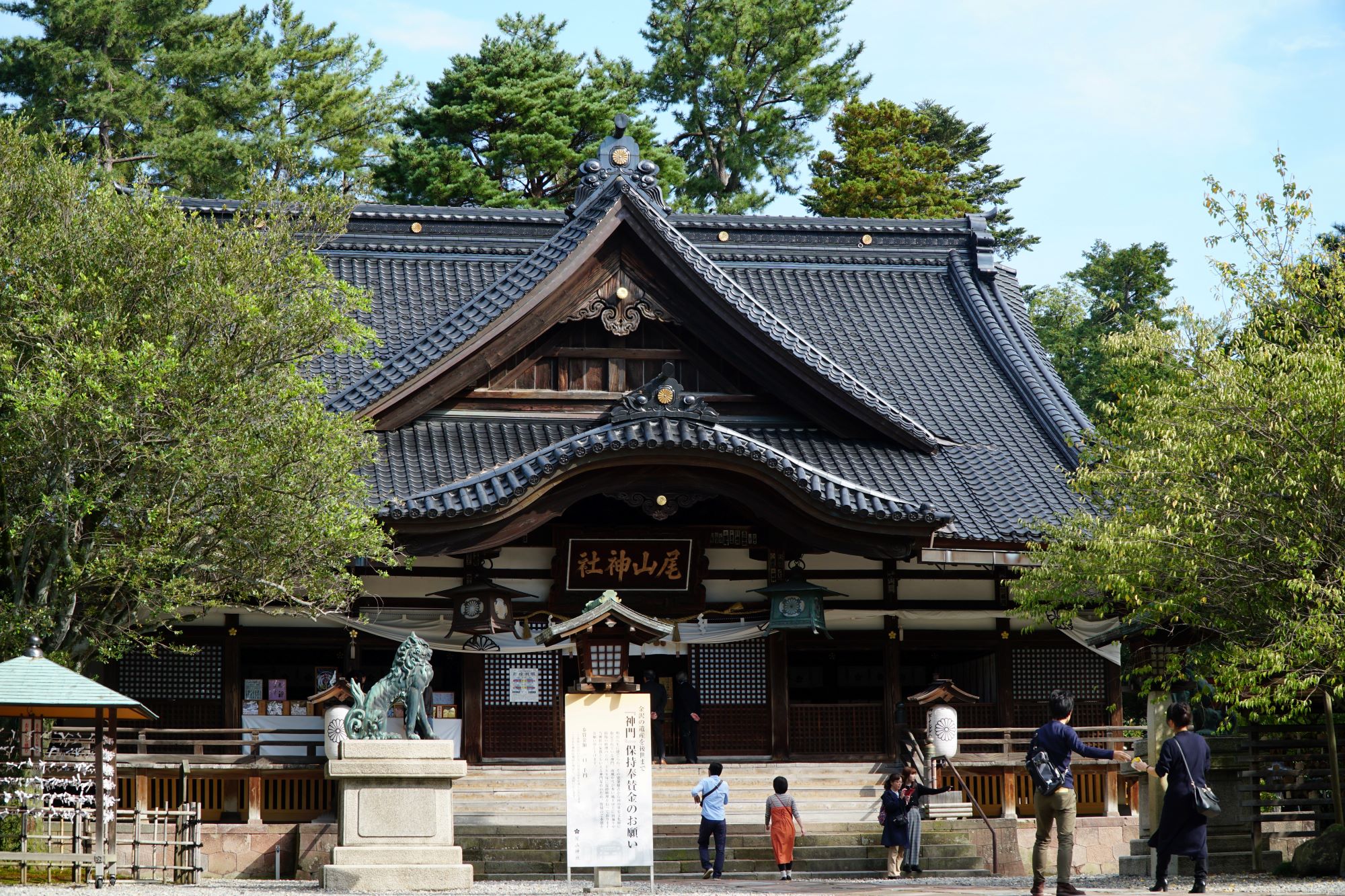 Oyama Shrine is a short walk from Kanazawa Castle, Kenrokuen Garden, and Omicho Market, making it easily accessible on foot.