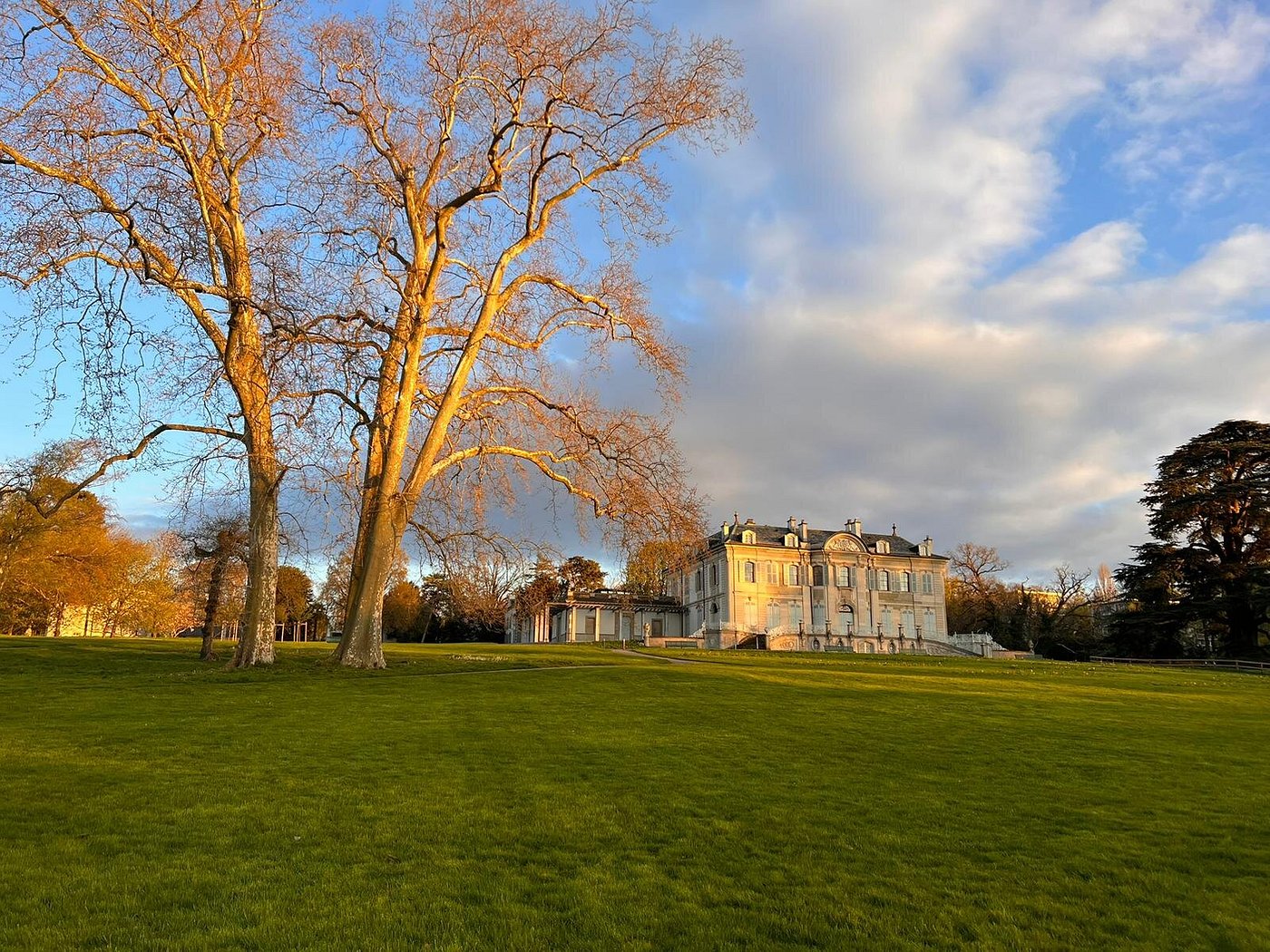 The Genève-Eaux-Vives train station is a 10-20 minute walk from the park, served by Léman Express and regional trains.