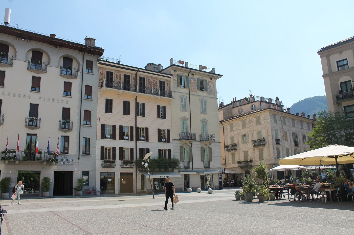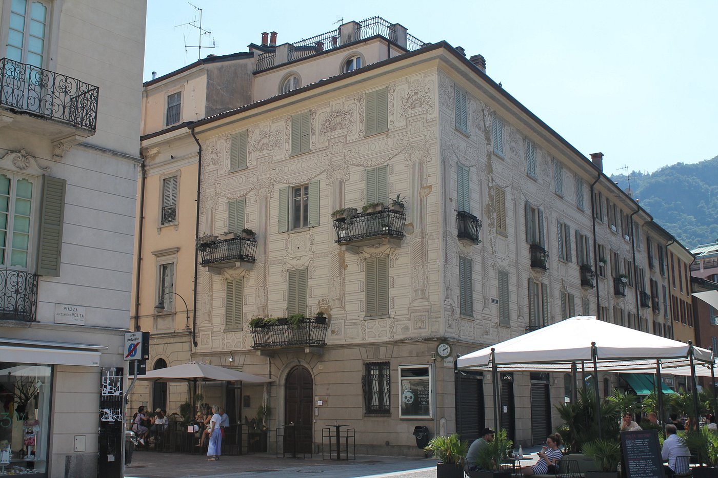 Explore lakefront square at Piazza Alessandro Volta