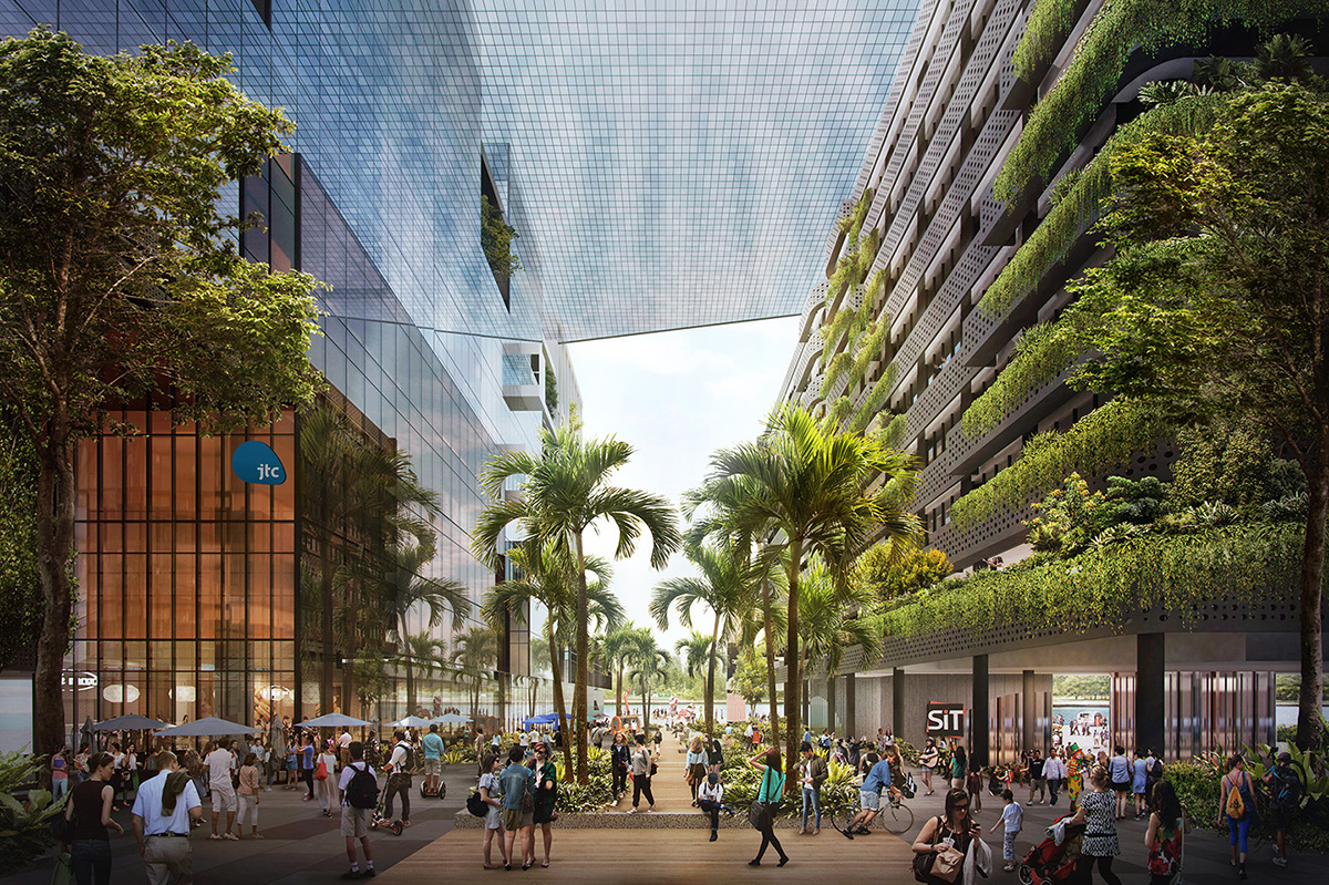 The district is designed for cyclists, with ample bicycle parking and connections to the Park Connector Network.
