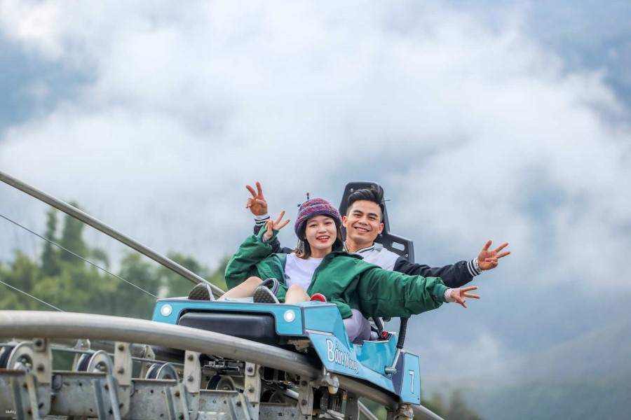 Ride alpine coaster through scenic mountains in Sapa