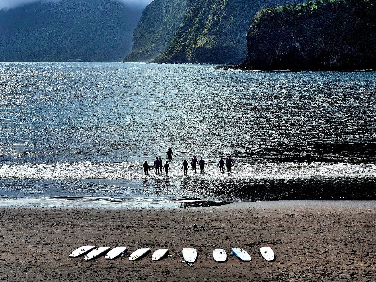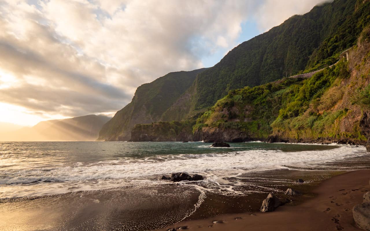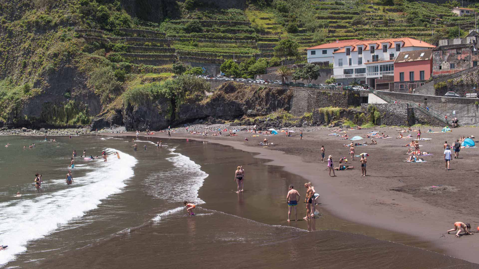 Swim at Seixal's dramatic black sand beach
