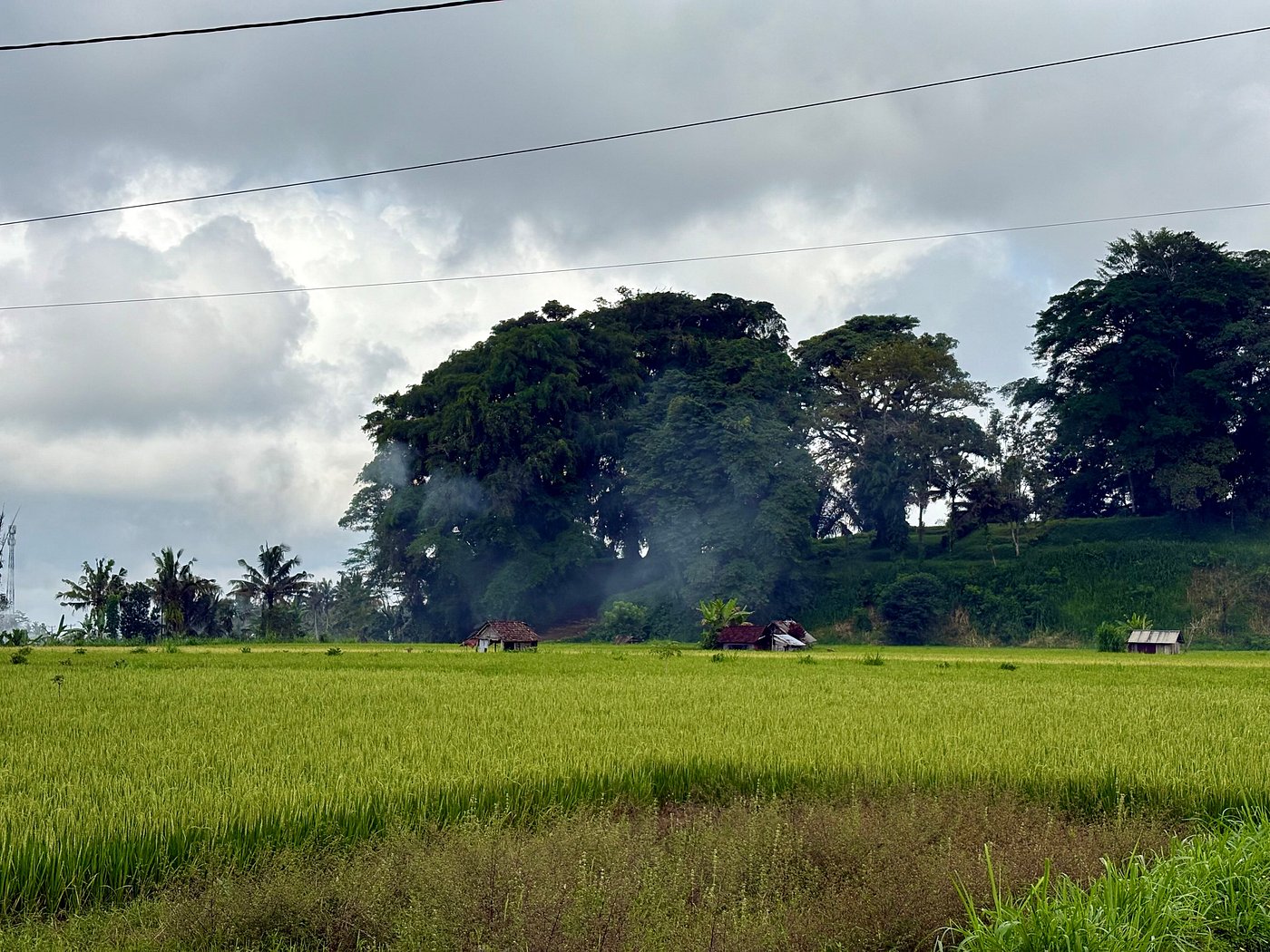 Wet season with lush green landscapes but frequent rain showers