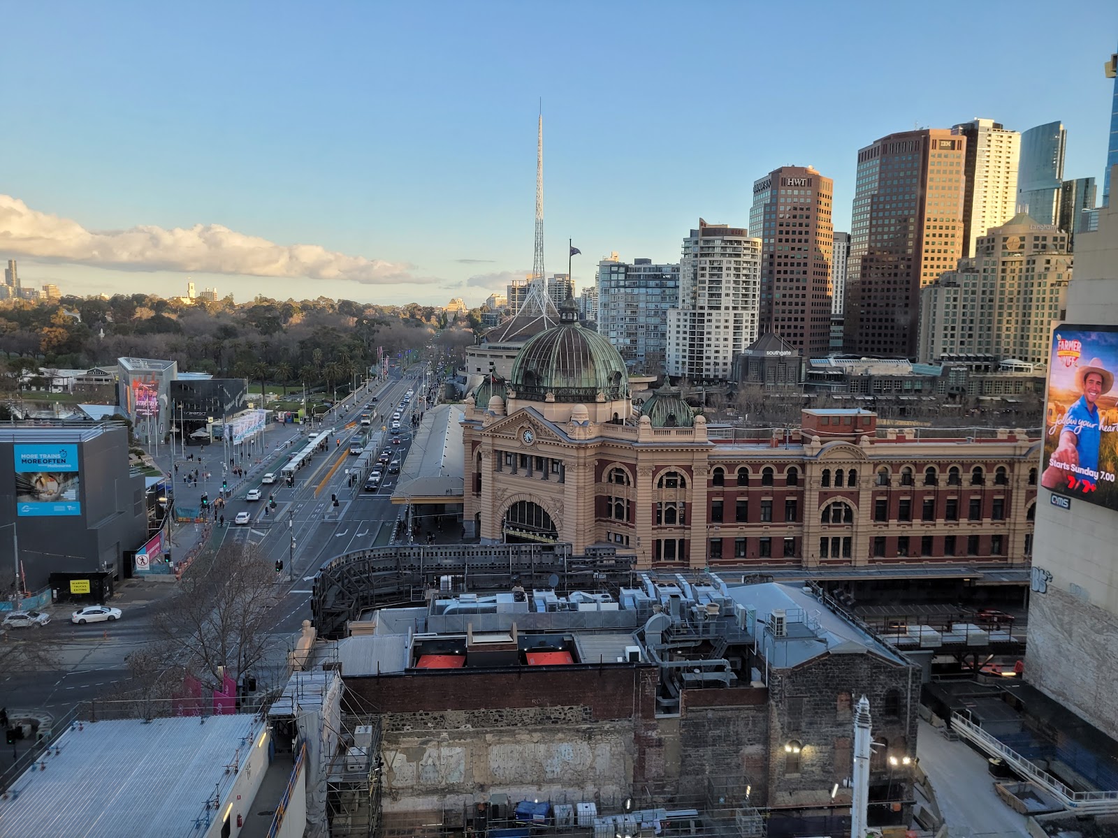 The building is located directly opposite Flinders Street Station, a major hub connecting all suburban train lines. The new Town Hall Station is just 99 meters away.