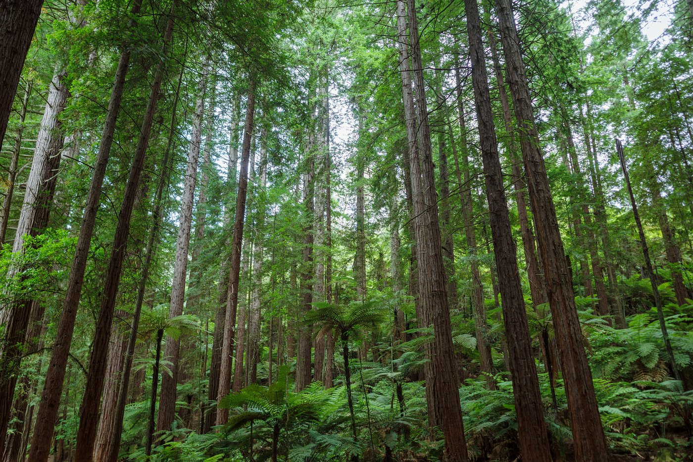 Walk towering redwoods at Whakarewarewa Forest