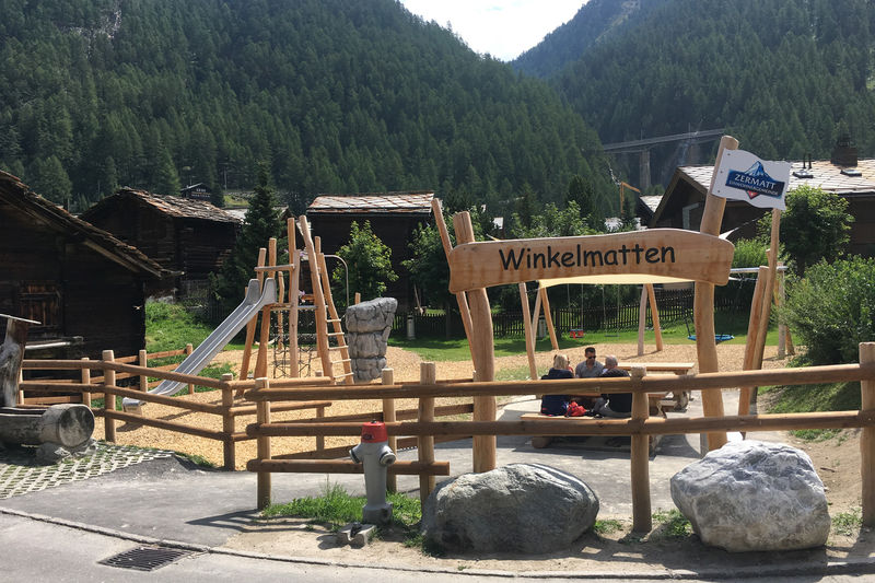 The free electric bus service, specifically the Red Line, directly serves Winkelmatten, with stops like Zermatt, Bahnhof and Kapelle Winkelmatten.
